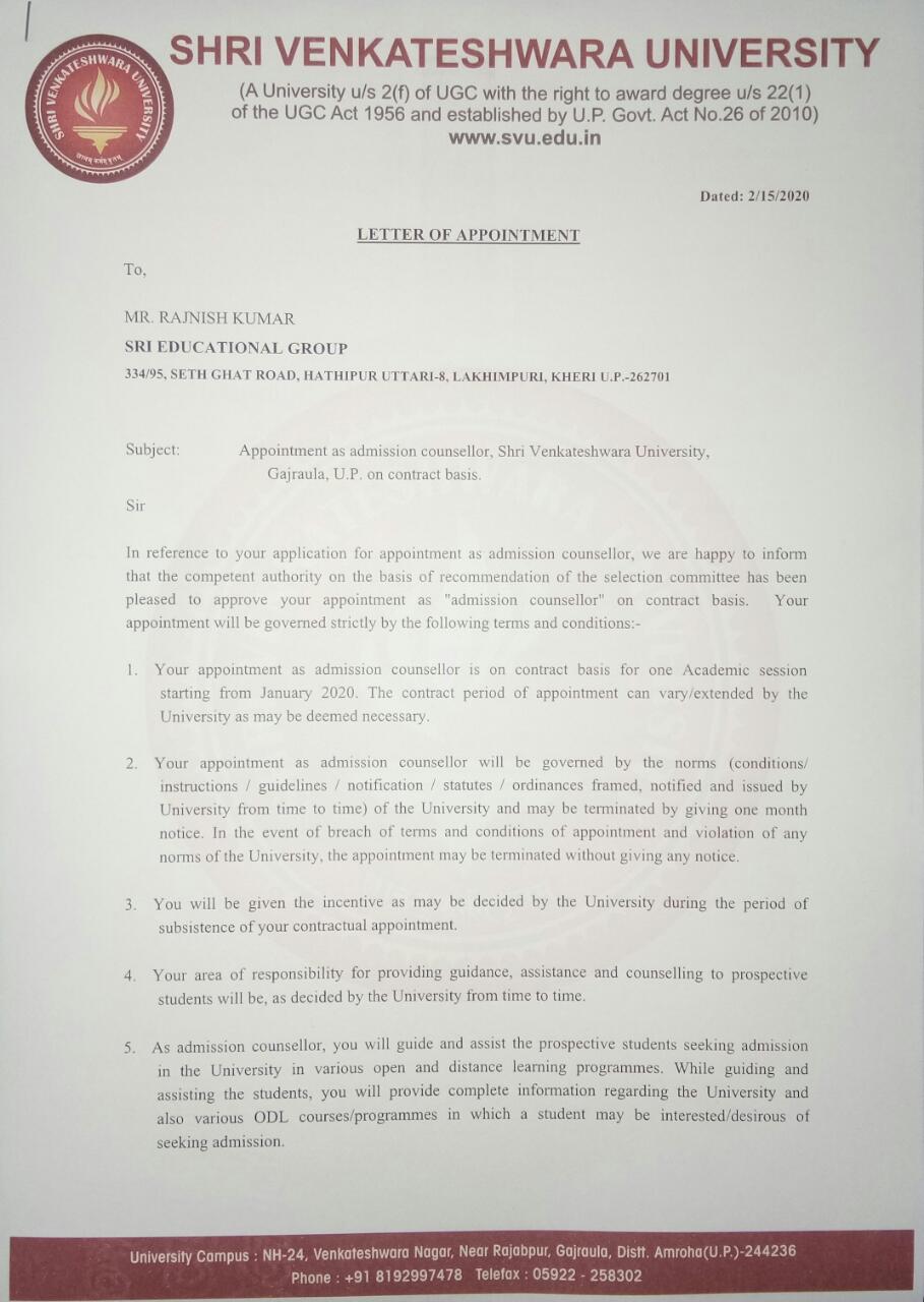 â–ºADMISSION/COUNSELLING CENTRE CODE: SVU011258